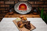 Kebapi 400g, gourmet patty 200g, fresh macedonian chicken sausage 125g, smoked sausage 125$, smoked pork 150g, pork chop 350g, chicken thighs 150g, chicken breast 150g. Comes with 3 large sides and homemade somun bread.